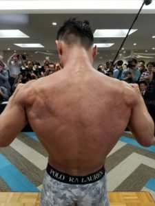 前日計量の様子を見ても分かりますが、非常に発達した広背筋はまさにコブラのよう。