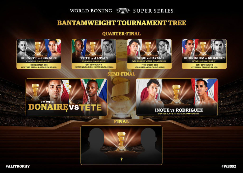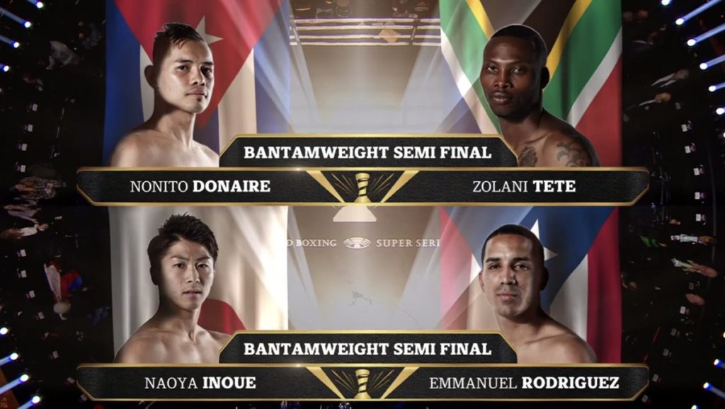 準決勝の対戦は、井上尚弥VSエマニュエル・ロドリゲス、ゾラニ・テテVSノニト・ドネアです。