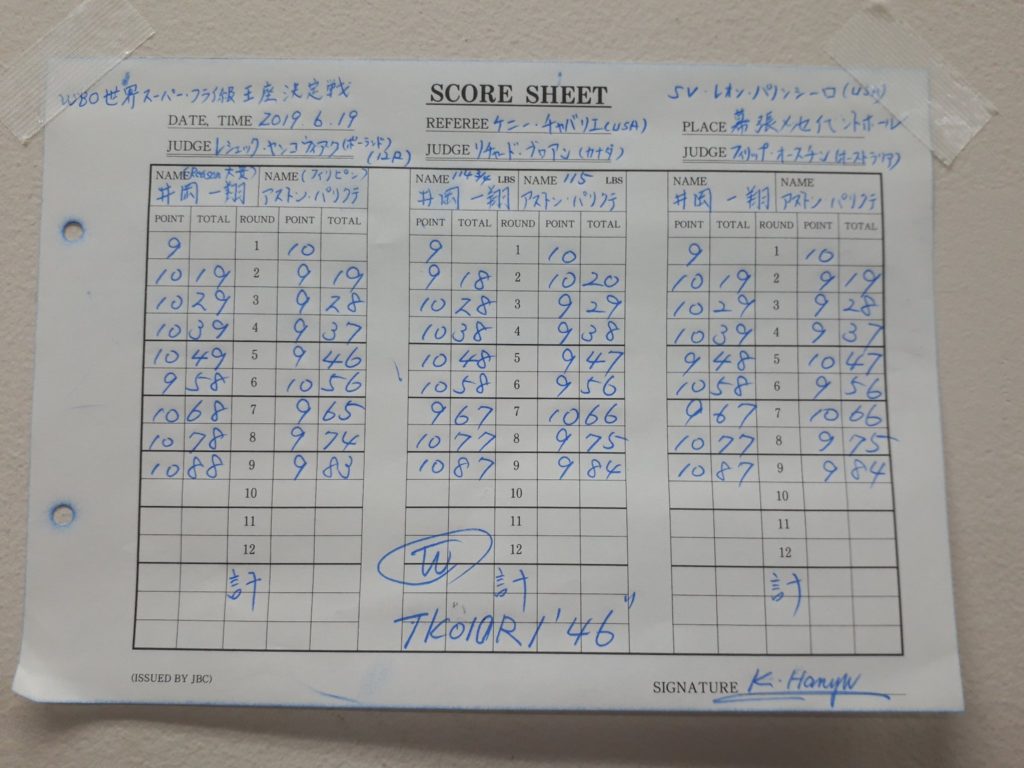 だが打ち合いはパリクテの方が有利と思いきや、ラウンド後半にパリクテのスタミナが切れて、そこに井岡一翔がボディーやアッパーカットを放ち巻き返す。