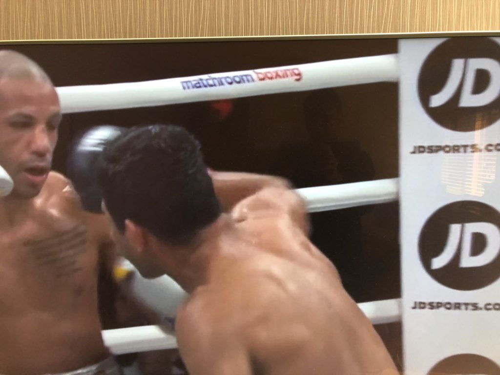 ラウンド始まり、序盤にヤファイが左ジャブを打つ。その打ち終わりにロマゴンが会心の右ストレート一撃!でヤファイダウン!